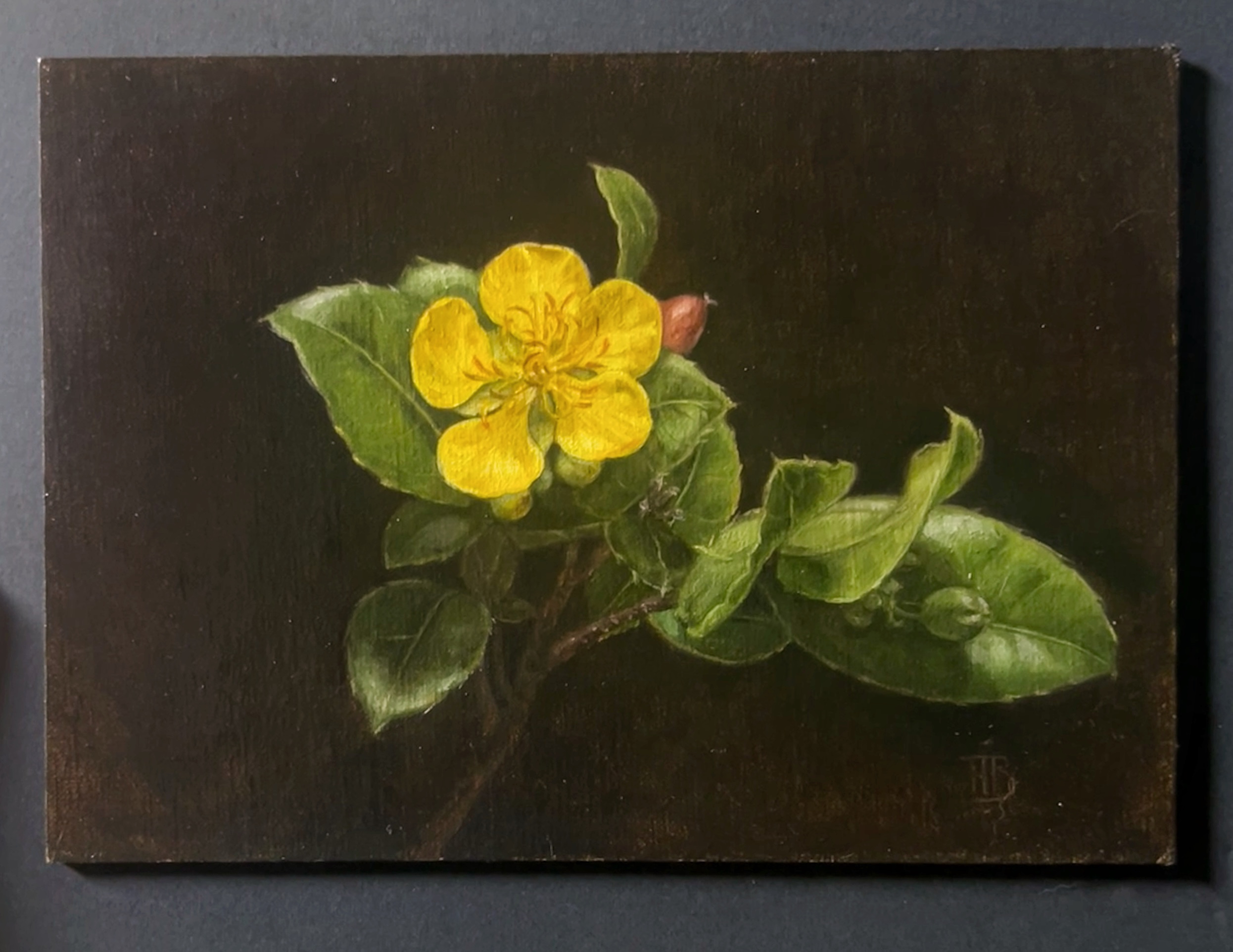 5×7, oil on linen & aluminum. .25 inch thick, so it will fit a standard picture frame if you take the glass out.