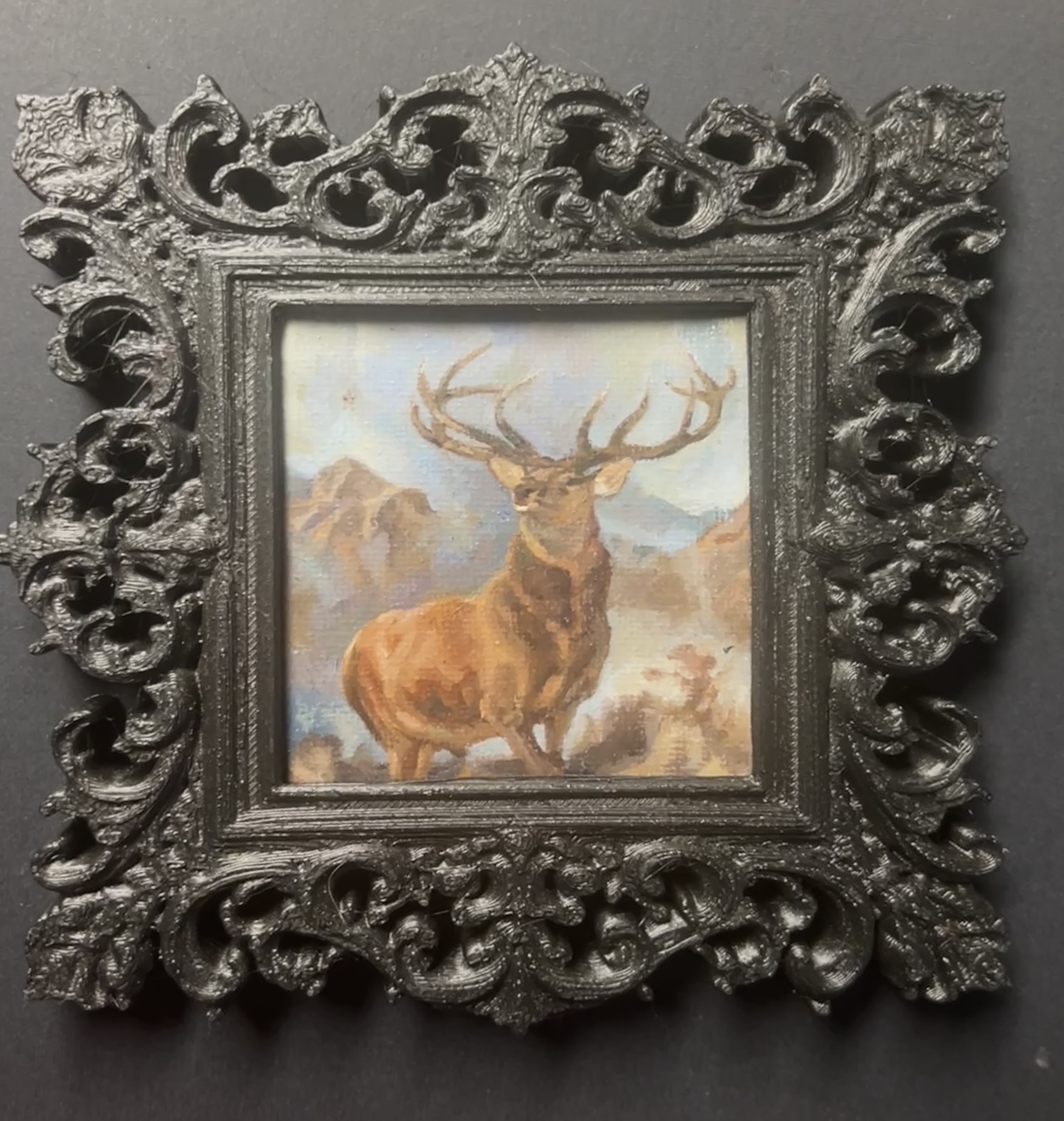 Miniature study of the Monarch of the Glen, by Sir Edwin Landseer, inĀ 3D printed frame.