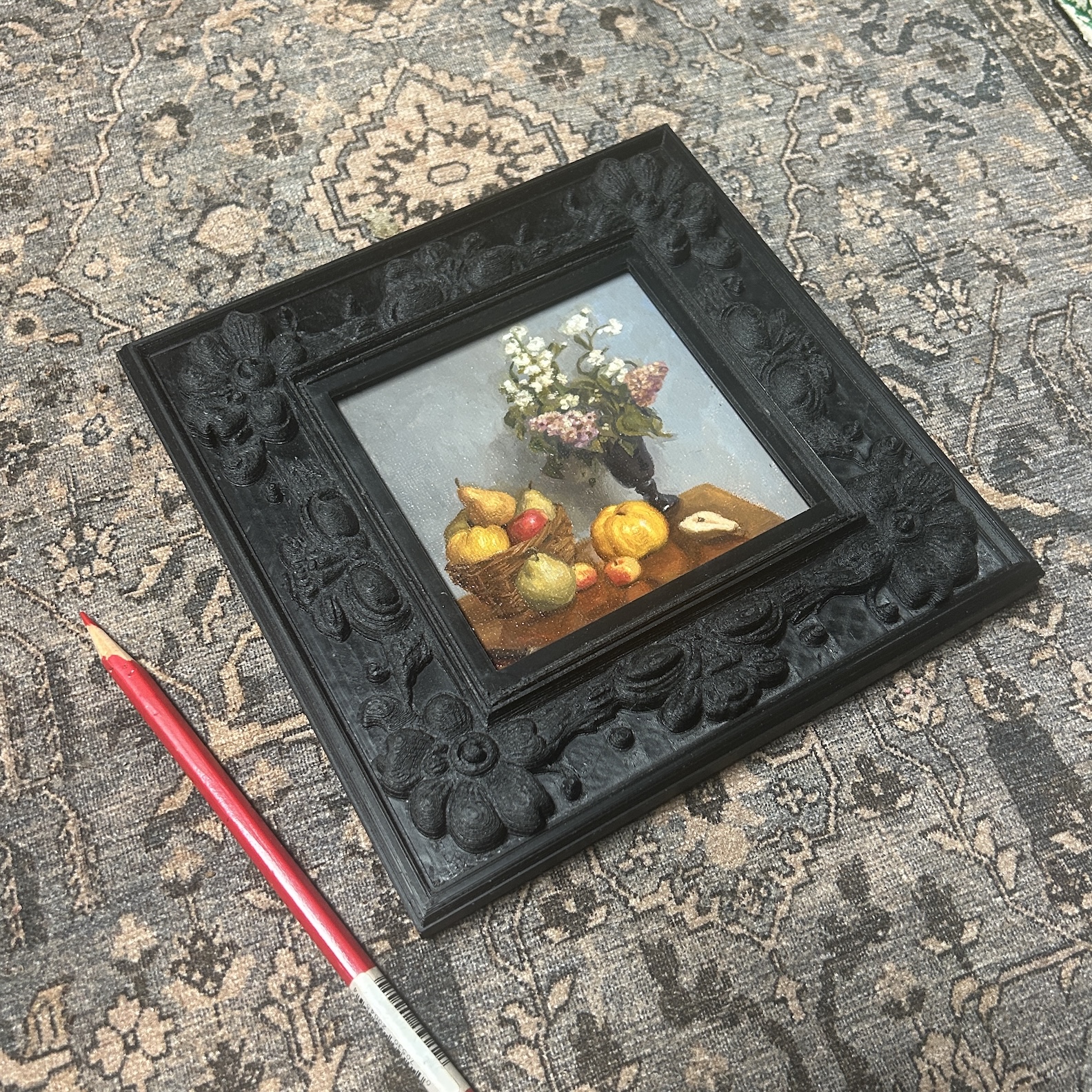 Oil on canvas, 4×4, with 10×10 PLA frame.